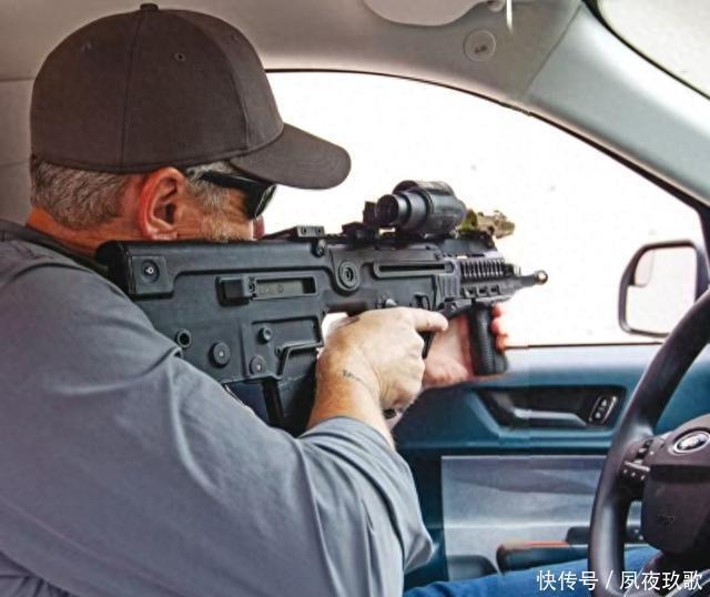 提供零支撑。因此,你必须仅用你的肌肉结构来稳定武器。这对牛头犬来说不是问题。短的总长度结合集成的枪托和接收器,便于存储和部署。此外,你可以在车内肩扛武器,无论远程场景如何,都能进行良好的射击。牛头犬步枪的纤细宽度和短枪管使其成为基于车辆战术的用户友好平台。 一个短平台将支撑手靠近枪管的末端。了解枪口位置——无论是相对于你的支撑手还是车辆的窗户——在处理车门把手、侧镜、保险杠和引擎盖时至关重要。选择正确的手停止或前握把对于控制和支撑手指的安全至关重要。汽车内部的封闭环境和车辆外部周围的空间是微妙的。选择枪口装置时,考虑玻璃和塑料部件以及你周围的人。线性补偿器或枪口扩散器是个好主意;这些装置将能量直接向前引导,远离武器枪口的侧面。效果是双重的:爆炸被引导远离射手旁边的窗户,减少破碎的玻璃和碎片。它还减少了附近其他人感受到的爆炸冲击。这些设备的轻微增加的后坐力是与在车辆内外射击相关的其他问题的公平权衡。