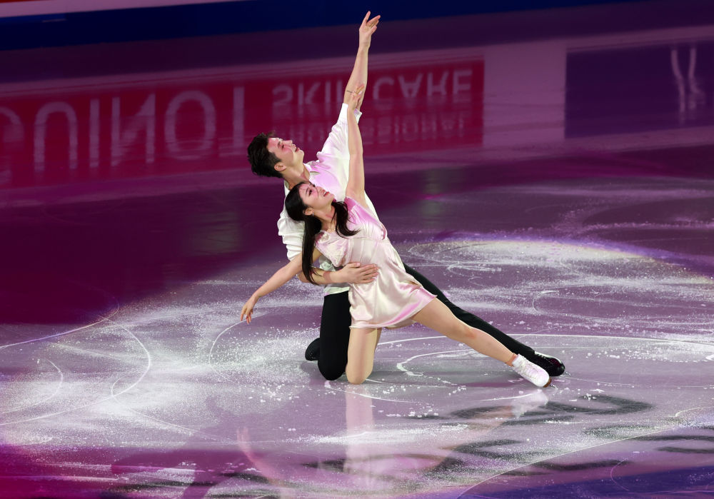 1月25日,中国组合王诗玥/柳鑫宇(后)在北京举行的2026年国际滑联四大洲花样滑冰锦标赛表演滑中。新华社记者 张晨霖 摄